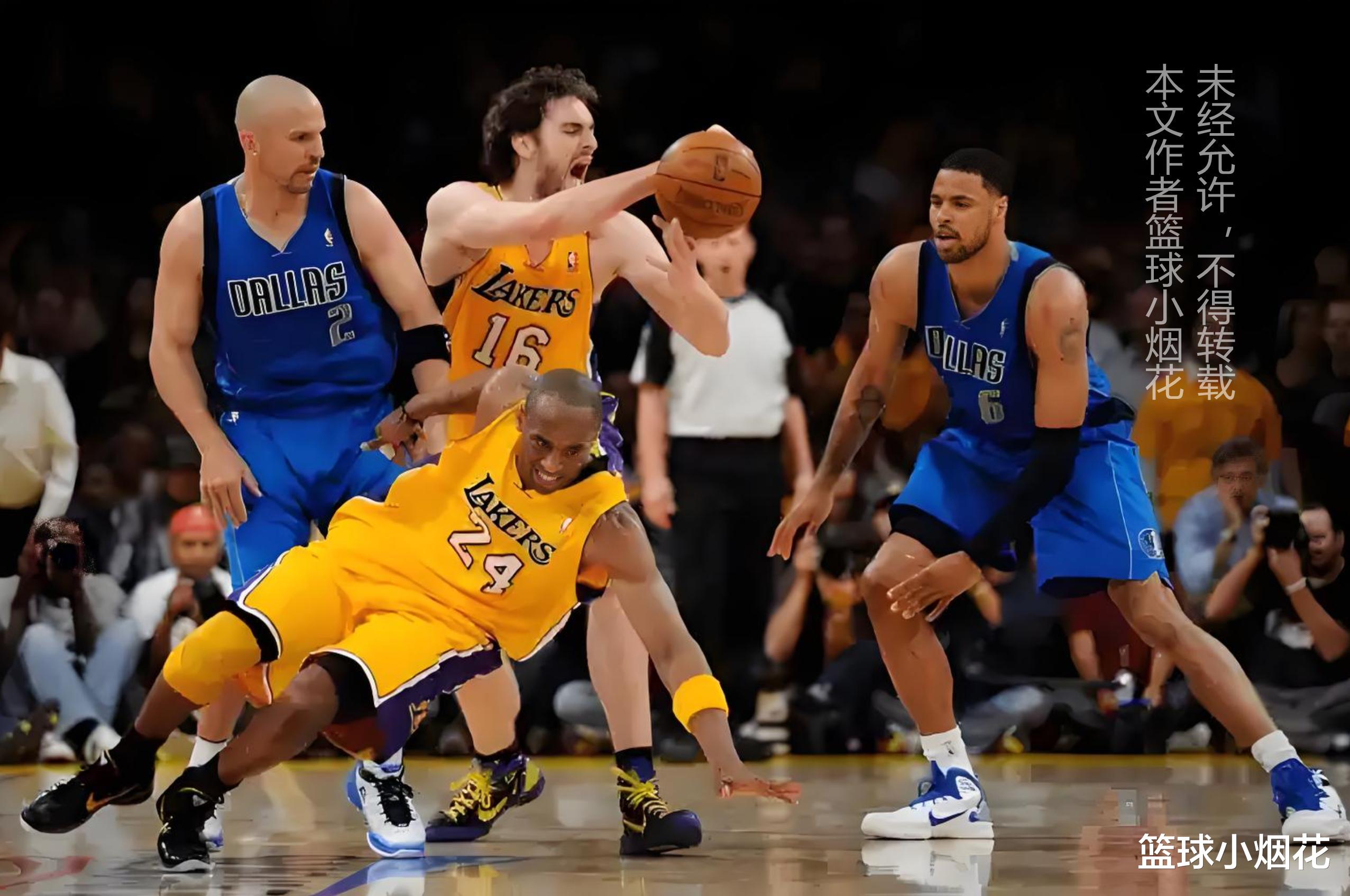 因为小牛彼时的锋线卡隆-巴特勒赛季报销,提上来打首发的德肖恩-史蒂文森也就会耍个嘴炮,因此在大多数情况之下,都是基德承担防守科比的重任,科比引以为傲的背身单打,根本就推不动基德,而且基德还不吃假动作,科比要么勉强来个后仰中距离,要么冲进禁区挑战钱德勒的协防,不夸张地说,小牛次轮能4:0横扫湖人,基德的贡献甚至比诺维斯基都大!