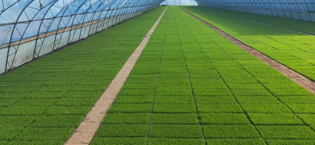 智能育秧:工厂化育秧大棚内,恒温恒湿的环境下,经过严格筛选的稻种在营养土中悄然萌发。农户通过手机APP实时监测温湿度,确保秧苗健壮无病害。