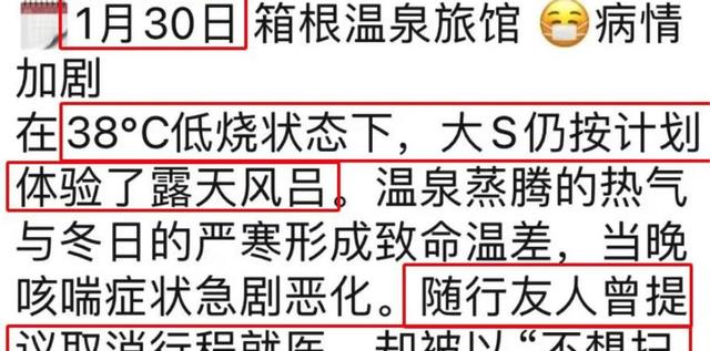 大S病因可能是流感引发的并发症,网友们依然指责在姐姐高烧期间,小S安排温泉行程,漠视了健康问题。