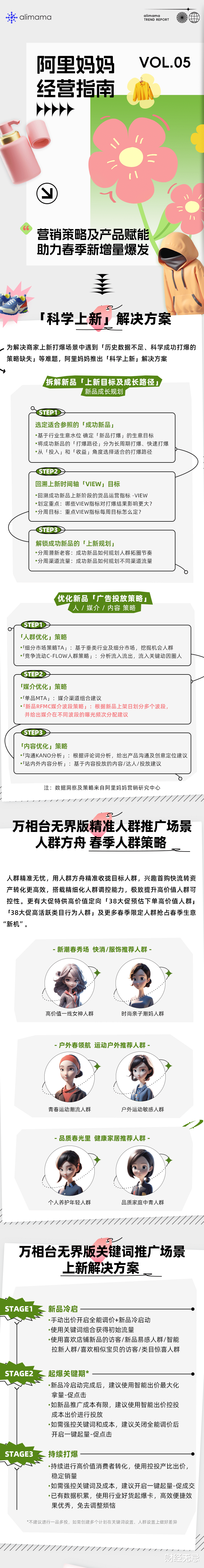 3、科学经营:阿里妈妈让「上新」变「常新」在如今多变的消费环境下,春季上新不仅仅只是一个经营节点,更是承载全年的经营信心。上述焕新场景和典型行业的打爆路径,所指向的底层认知只有一个:只有看到趋势,发现方向,明确路径,才能抓住未来。