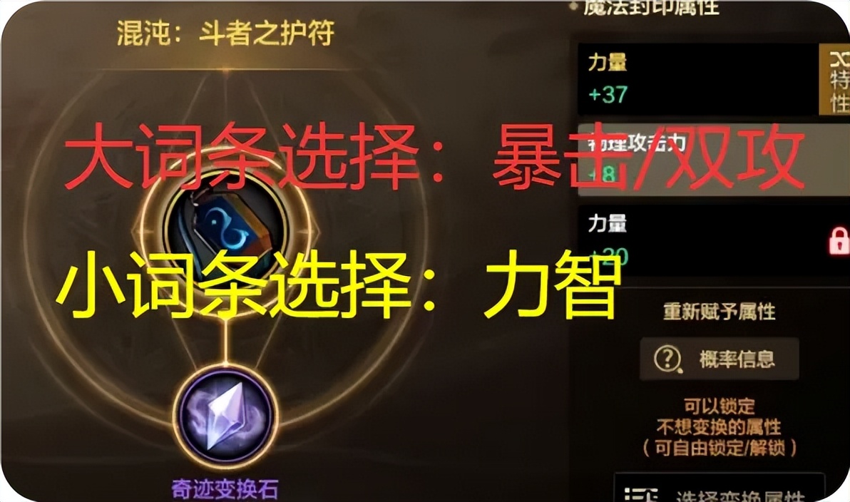 又是反向操作的一个细节,不知道为什么会这样设定,反正追求高抗魔值就选择「1暴击+2力智」的词条组合!