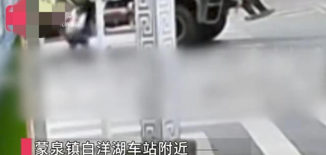 油罐车撞倒了正在过马路的女孩,而身后的母亲目睹了这一切。