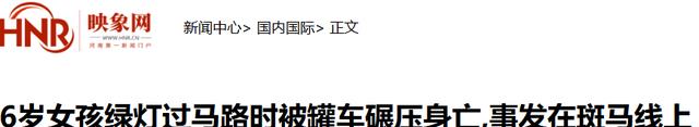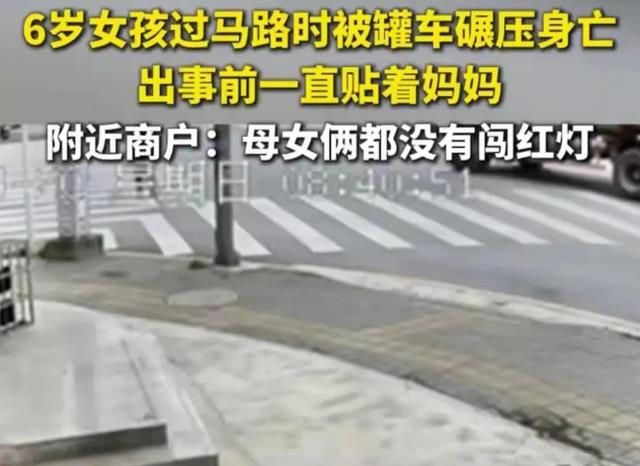 映象网2025-04-226岁女孩绿灯过马路时被罐车碾压身亡,事发在斑马线上