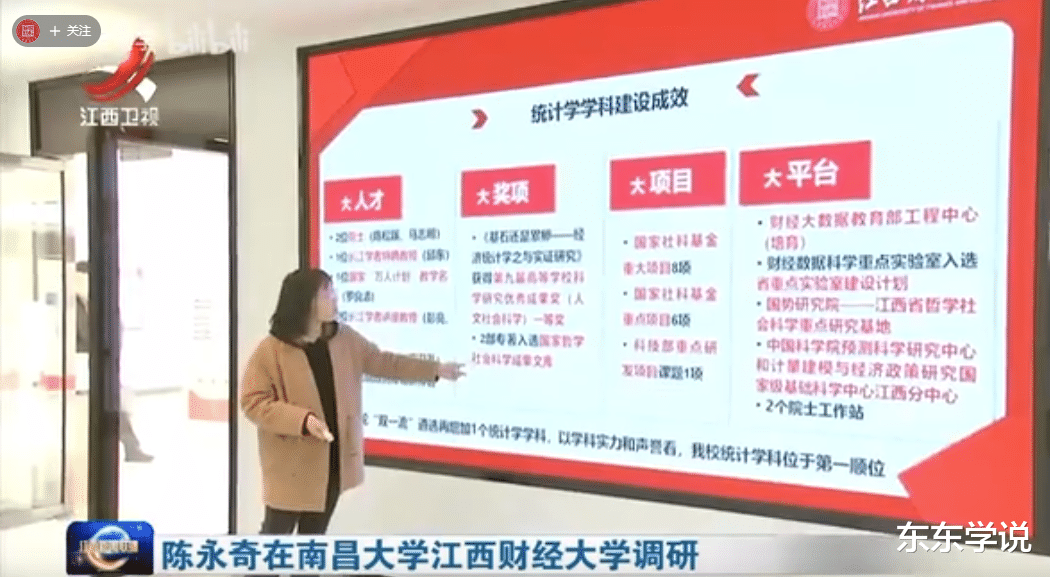 江西省委副书记陈永奇在江西财经大学调研期间,学校在向陈书记汇报的时候,江西财大的app中,透露了该校的统计学科建设成就。