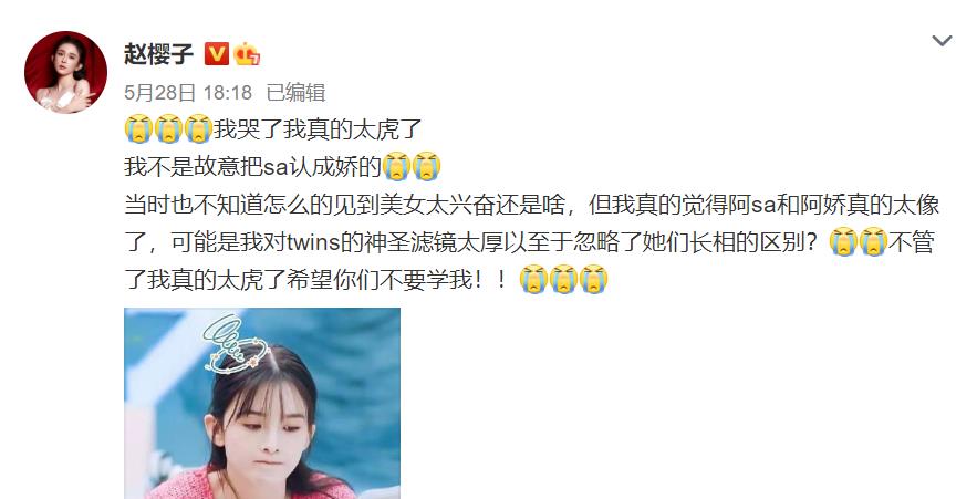 一方面说着Twins是自己的偶像,一方面又将阿Sa认成阿娇,都说五谷不分,这是娇Sa不分,还敢妄称她们是自己的偶像,且不说已经相识了一段时间,阿Sa还是自己的同组成员,难道天太黑,难道近视忘戴眼镜了……