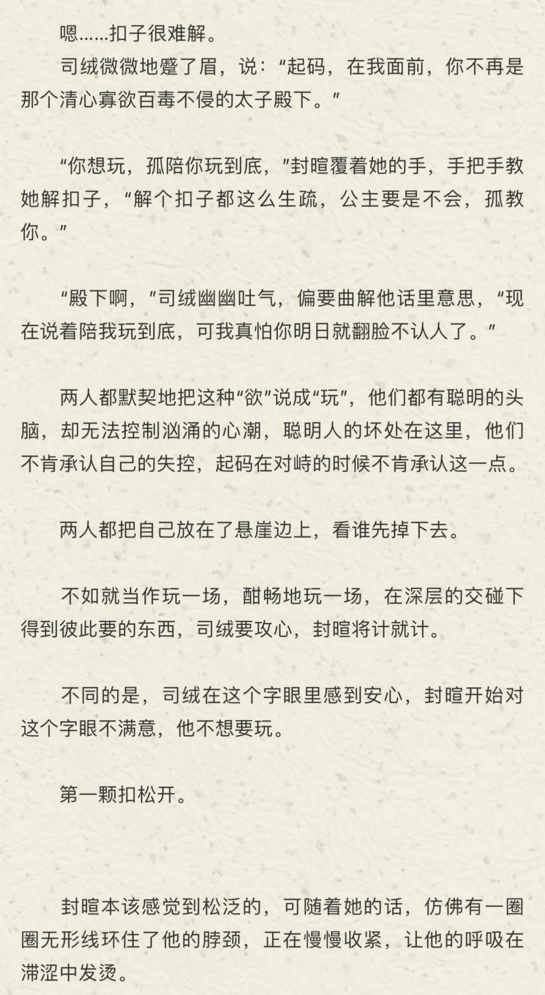 男主太子是个冰冷的清心寡欲的严谨的高岭之花,心中没有爱的位置,一开始不明白自己对女主司绒的情绪特殊在哪