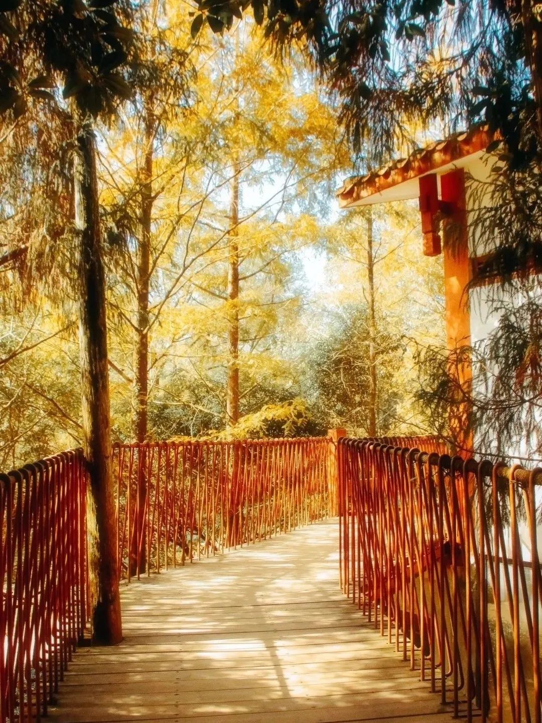 驱车沿高星公路蜿蜒而上,那感觉就像是闯入了一个童话世界。两侧的山林被秋色染得如火如荼,红的、黄的、橙的树叶交织在一起,构成了一幅动人心魄的秋日画卷。阳光透过树叶的缝隙洒下,形成一片片金色的光斑,仿佛给整个公路铺上了一层金色的地毯。