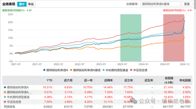 17-18日德邦锐裕利率债收益是负数,但它的收益率超了0.5%。