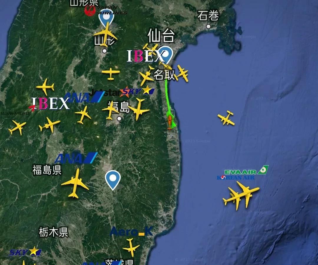 刚刚,9月1日(今天)10点24分,在日本福岛东部沿海和东部海域上空,发现两架正在进行折返飞行的飞机。