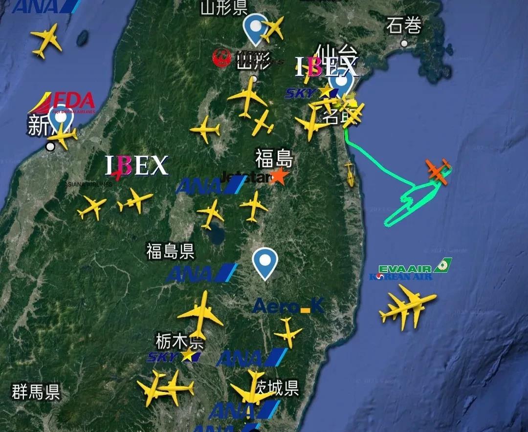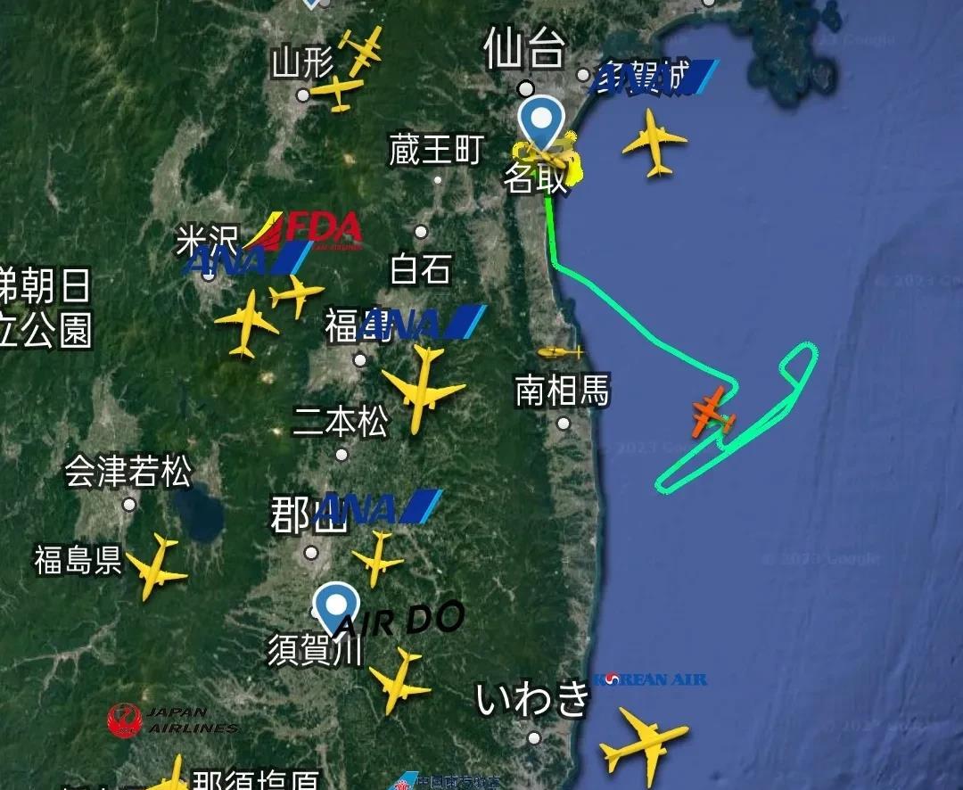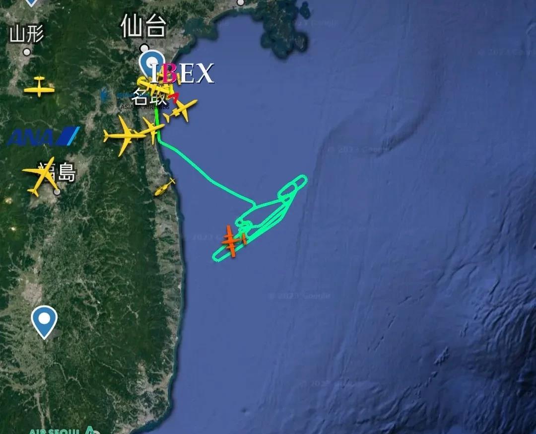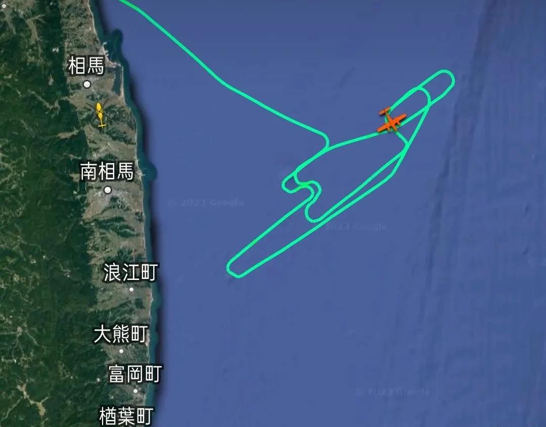 今天上午,两架飞机在福岛东部海岸和东部海域上空进行长时间折返飞行,轨迹不同寻常,这在干什么呢?