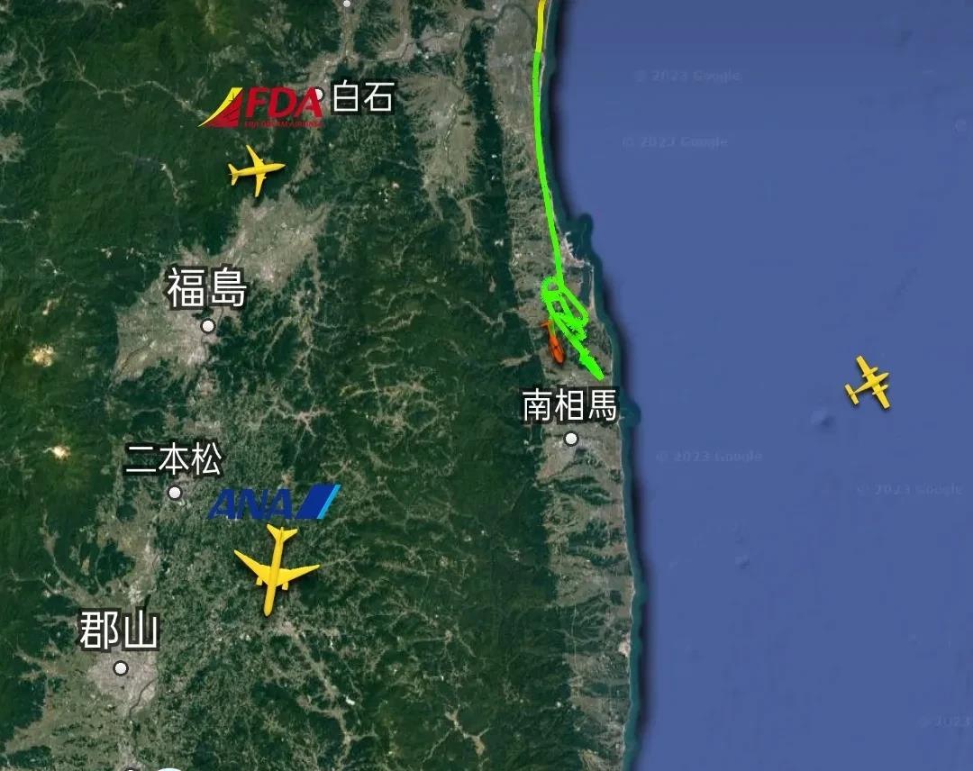 10点24分,在福岛东部海岸附近上空,发现一架呼号为JA182A的直升机,高度826米,速度170公里/小时。