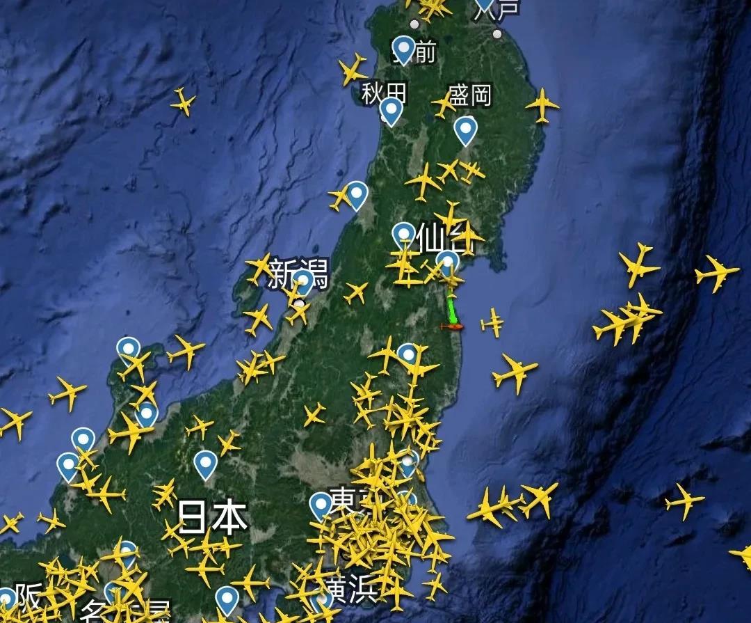 其中,在福岛核电站东北部海域上空,发现一架呼号为JA5811的小型飞机,高度2093米,速度243公里/小时。