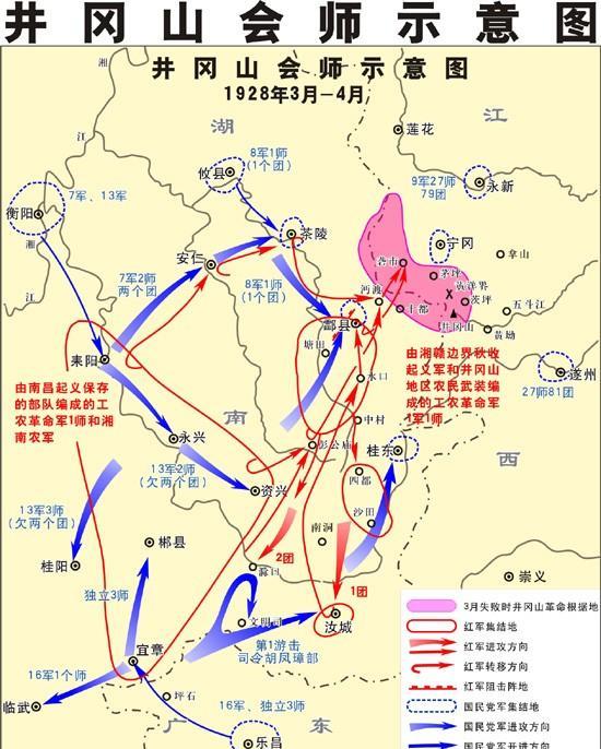 3月上旬,当毛泽东得知朱德、陈毅率领的南昌起义军余部正向井冈山方向撤退,当即决定兵分两路去迎接朱德、陈毅部上山。