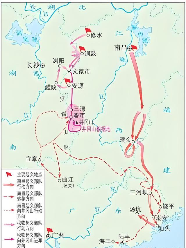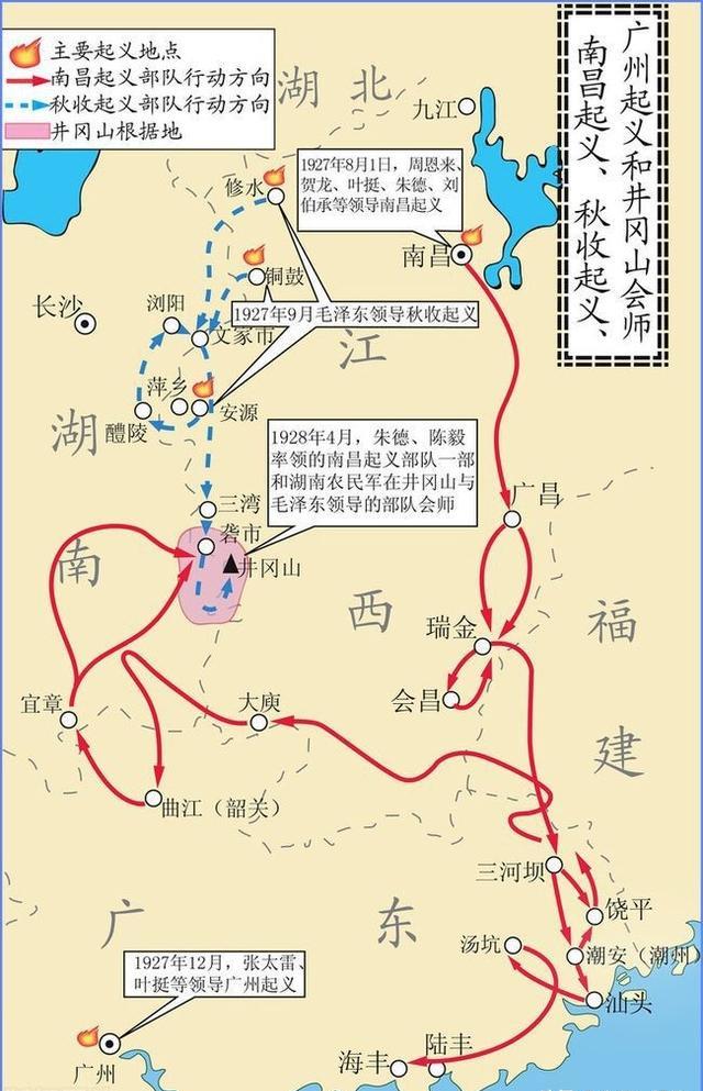 1927年9月9月,毛泽东领导了湘赣边界的秋收起义。随后,起义部队受挫,然后向湘赣边界的罗霄山脉进军。