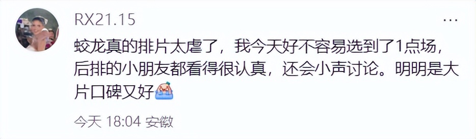 看看我这种二刷的观众,再看看那些自发替《蛟龙行动》撕排片的观众!各位院线经理,它真的是一部值得多排,而且也一定会卖钱的电影!