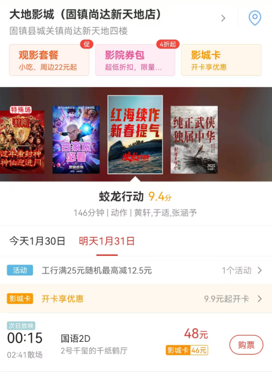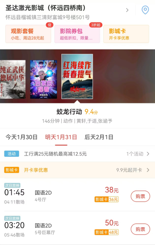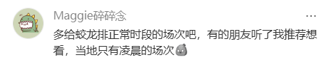 半点三点,这个点谁会专门跑去影院看片?看个海军特种兵电影,自己得先做到“特种兵式”的观影,真心地希望这些影城的经理们,能够看到观众的呼声,能给《蛟龙行动》排一些相对正常合理的场次啊。