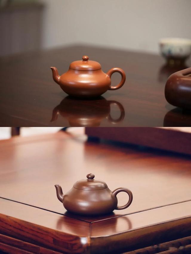 君德壶的造型脱胎于梨形壶,但更显敦厚稳重。其壶身如矮梨,鼓腹饱满,三弯流线条流畅,圆环把便于持握,截盖与壶口严丝合缝,整体传递出“大巧若拙”的美学理念。与思亭壶的“亭亭玉立”不同,君德壶更似一位谦和长者,沉稳中透出力量感。