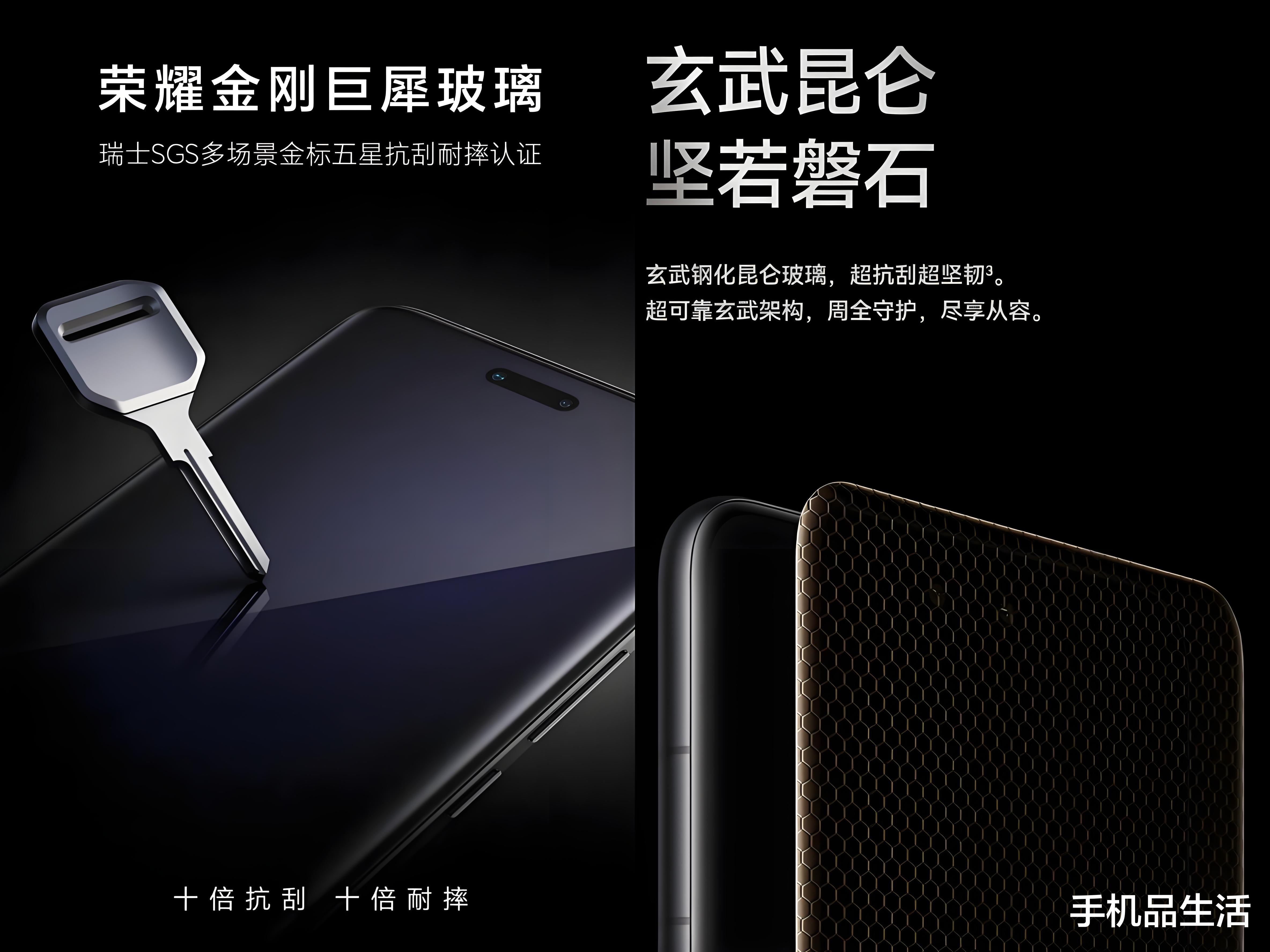 超强抗摔性能:通过在玻璃中植入特殊晶体,使玻璃内部结构更加稳定,强度大幅提升,抗摔能力比上代提升至11倍,并获得瑞士SGS金标五星玻璃抗跌耐摔认证。