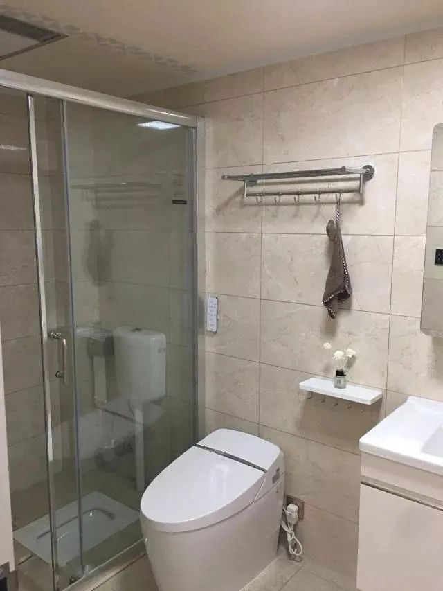 主卧室的卫生间,我们既安装了蹲便器,也安装了马桶,满足了不同人的需求。同时,我们还进行了干湿分离的设计,让卫生间显得更加整洁。马桶上方,我们安装了一个木板,可以用来放置一些小物品。公共卫生间的浴室柜,我们设计了镜子后面的灯带,既实用,又增添了一份美感。