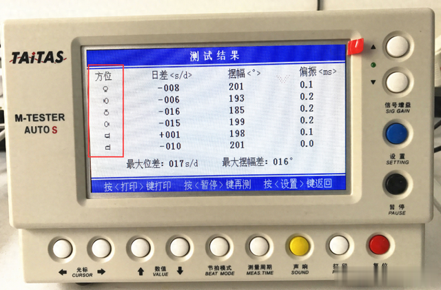 手表放在校表仪上,反复改变手表放置位置,看测试线条的变化,这就是在测位差。