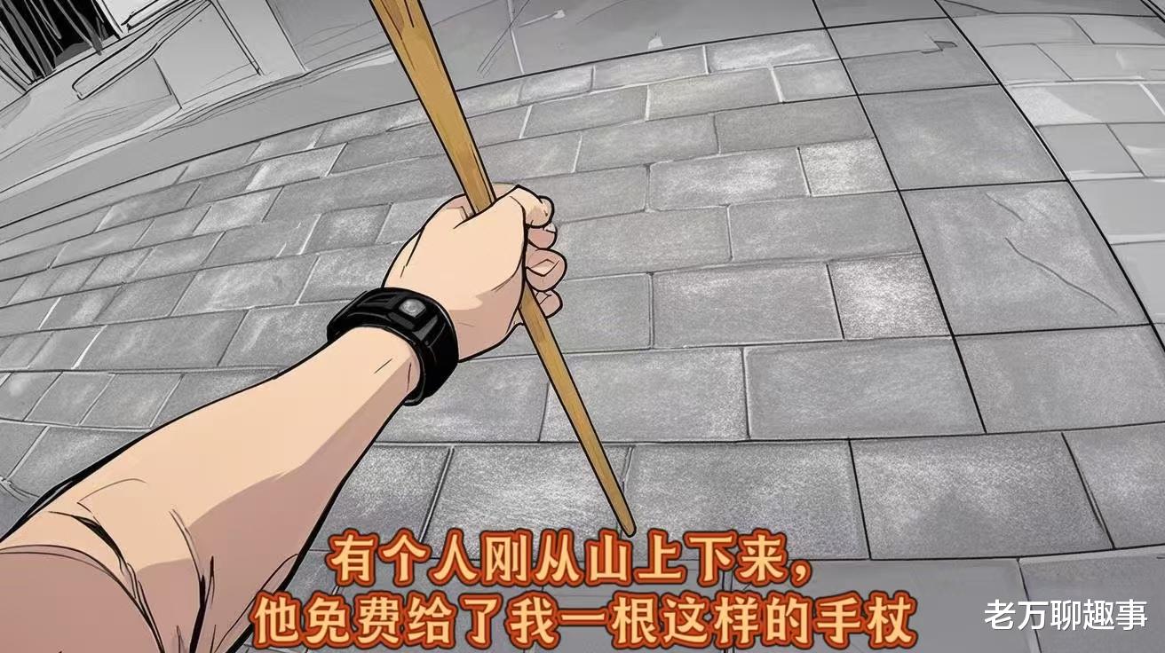 正当外国博主满怀信心准备开始爬的时候,一个刚从山上下来的路人,递给外国博主一根登山杖,面带微笑地说把它免费送给博主。