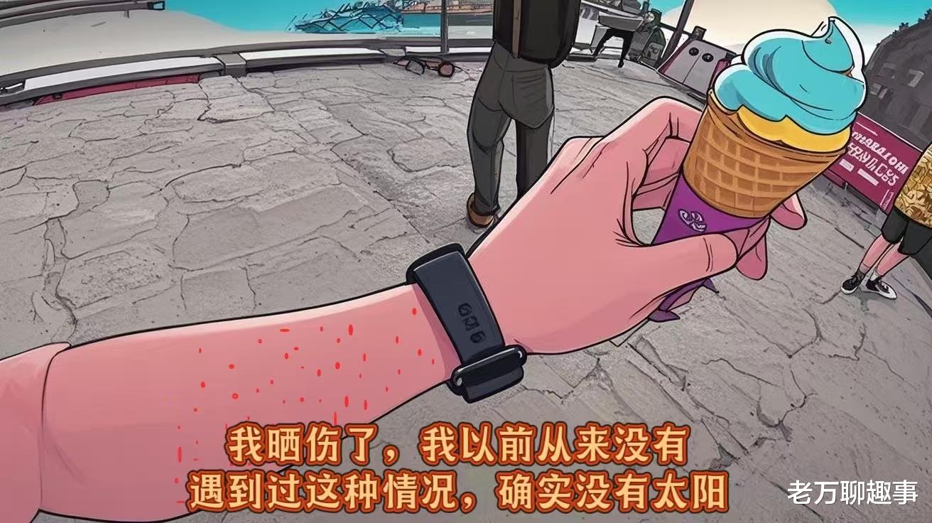 奇怪的是,即便阳光并非特别猛烈,可外国博主的胳膊还是被晒伤了。“我从未在这种情况下被晒伤过,实在奇怪。”外国博主一边品尝着冰淇淋,一边轻声说道。