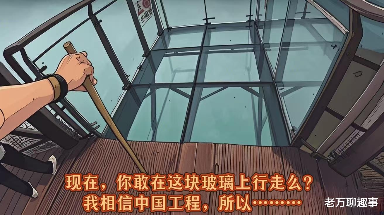 来到一处玻璃栈道,外国博主站在上面,内心虽有些许恐惧,但还是鼓起勇气向前迈进。“相信中国工程的质量与安全!”
