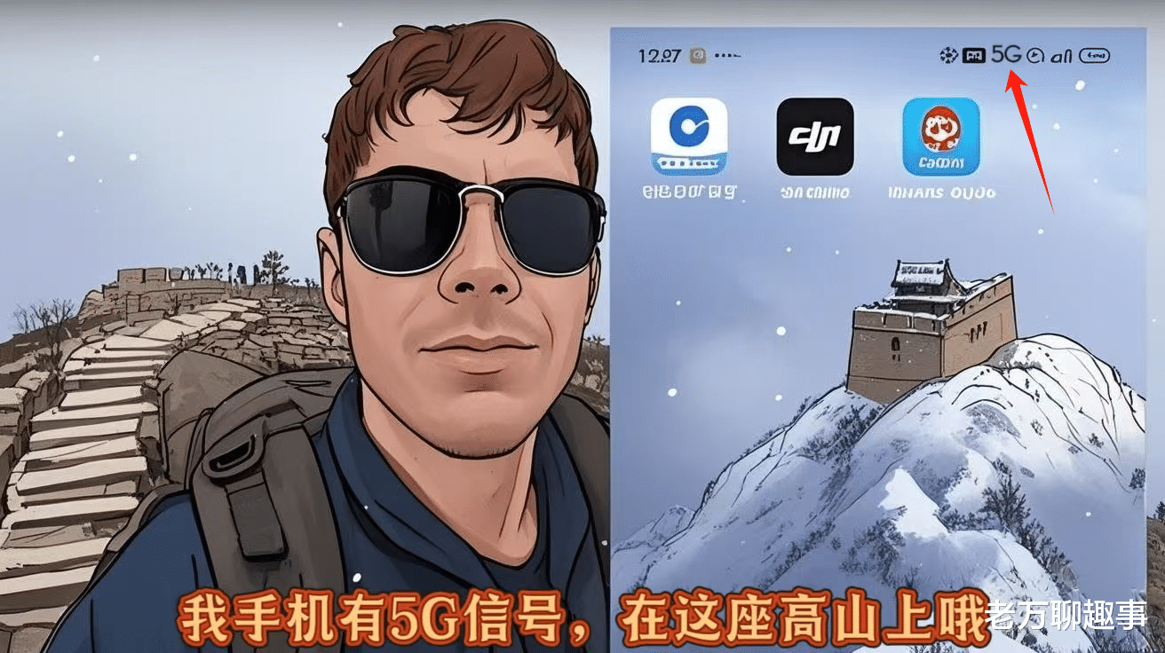 外国博主带着浓厚兴趣走过去,拍摄了几张照片作纪念。这时外国博主惊讶地发现山顶竟有5G信号,此意外发现令其极为震惊。