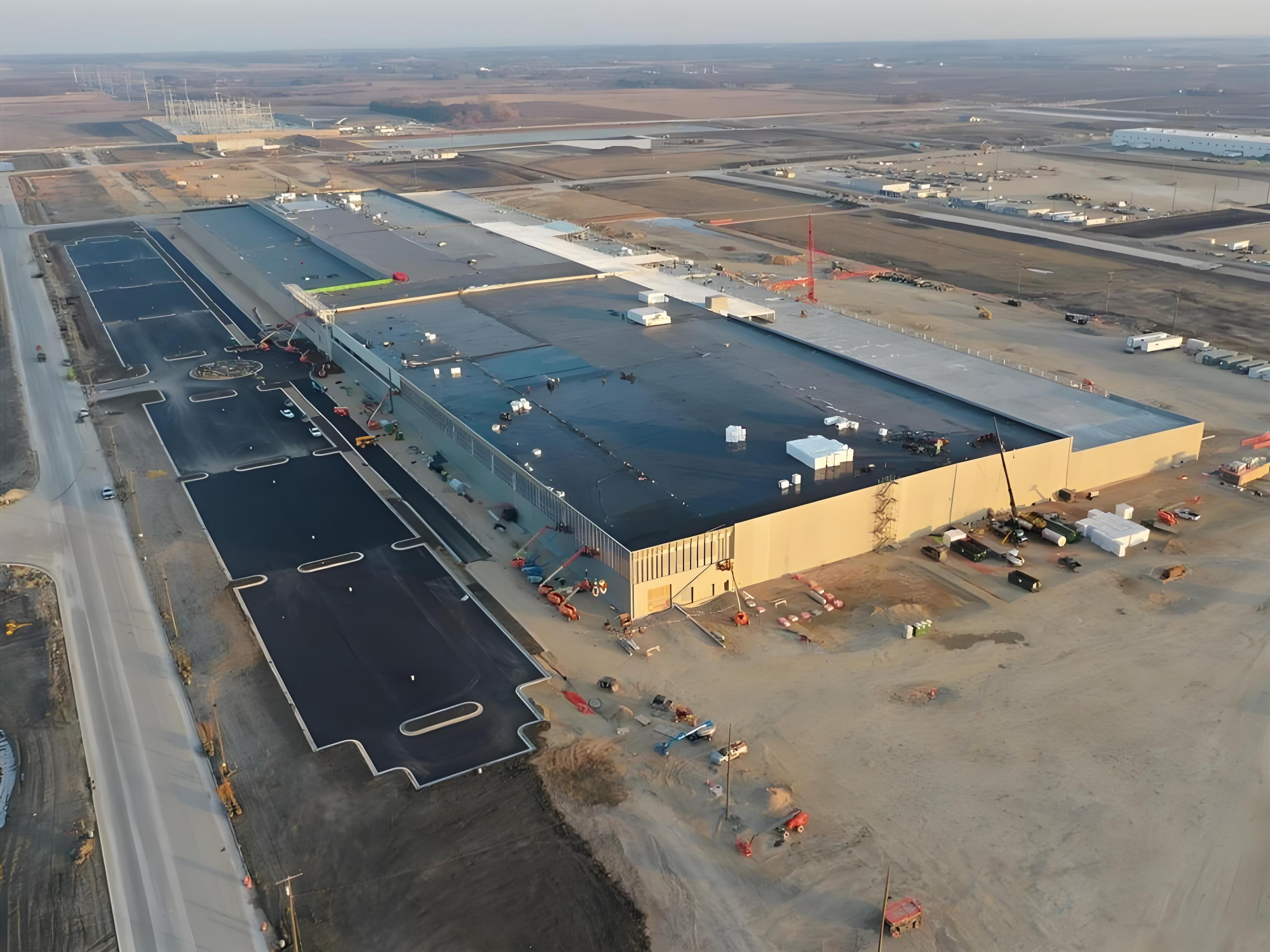 原本规划的1300万平方英尺超级工厂,如今只建成了不到百分之三,空旷的厂房里,零星的工人显得格外孤单。