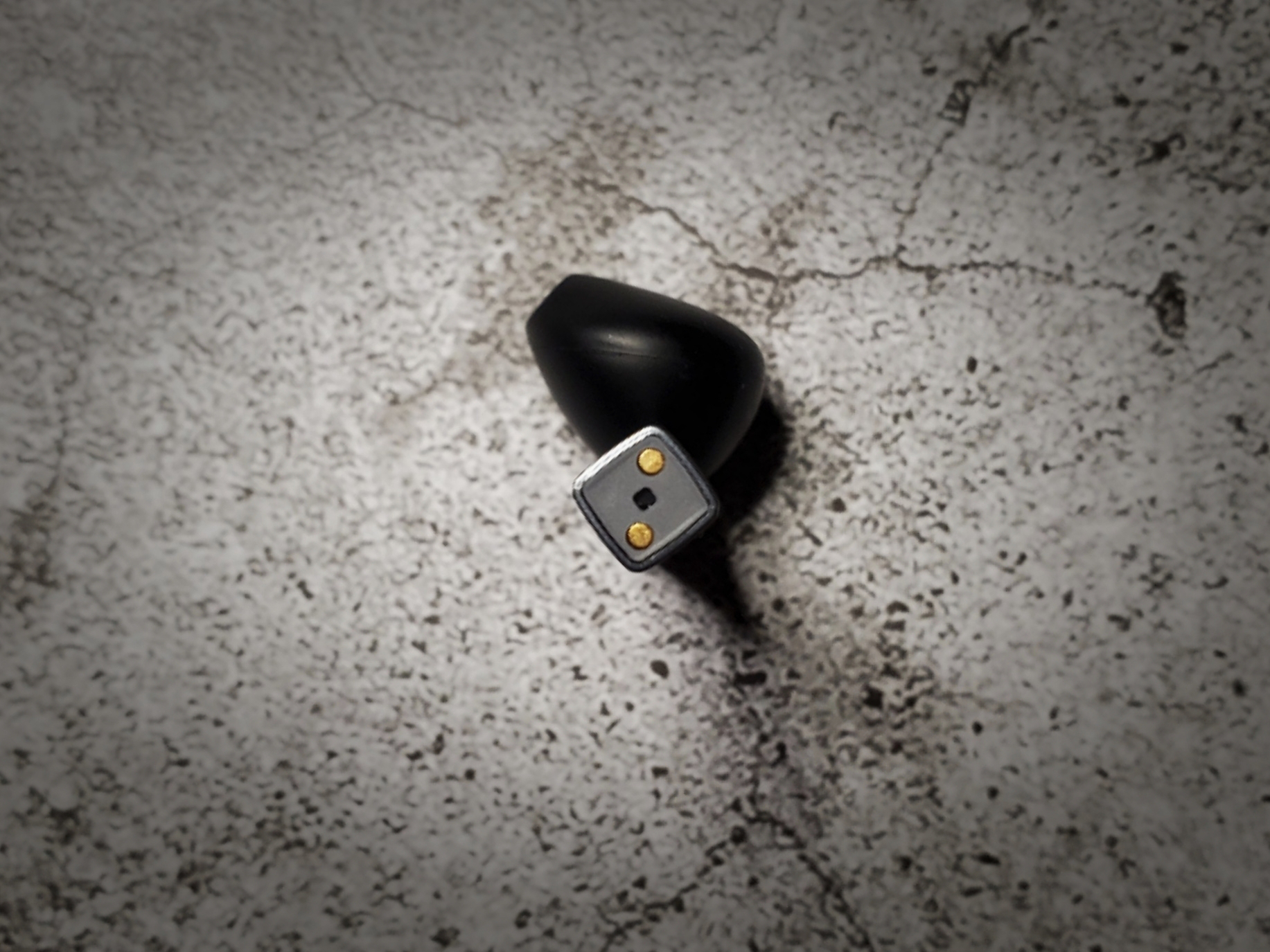 机身上部有一个降噪麦克风,与底部的麦克风相呼应,可以精准区分环境与使用的声音,能够达到90%的降噪效果;机身底部除麦克风外还有两个充电触点,放进耳机仓即可充电,充电指示灯在机身顶部,充电或连接手机时,指示灯才会亮蓝色或白色,对细节的设计真的用心。