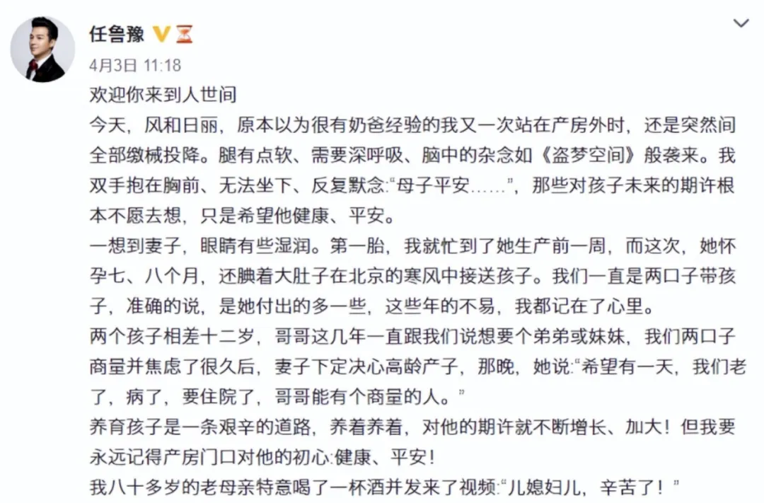 任鲁豫深知妻子的辛苦付出,他对妻子充满了感激之情。