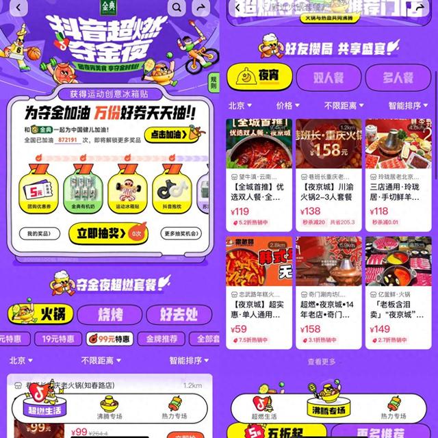 “抖音超燃夺金夜”专区还呈现了9元、19元、99元不同价位的特惠套餐,以及可以满足不同人群需求的单人、双人、多人团餐等,从商超购物、运动健身到观赛聚餐,为消费者提供多场景观赛消费选择。用户登录抖音,搜索“抖音超燃夺金夜”,即可进入相关会场。
