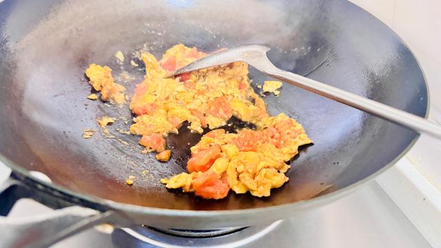 先炒鸡蛋,去皮的西红柿切成小块,起油锅,倒入西红柿加点白糖炒至出汁,把之前炒的鸡蛋倒进去,混合均匀,加适量盐提味就可以出锅了。