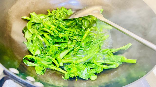 锅里放适量猪油,化开之后把洗干净的菜苔倒进去,炒至断生,现在的菜苔也是非常容易炒软烂了,出汁之后加适量盐提味就可以出锅了。非常方便,我一般不会加太多食材,有的人喜欢加点红椒,或者蒜泥之类的,我一直就喜欢这种非常原始简单的做法。很好吃的。