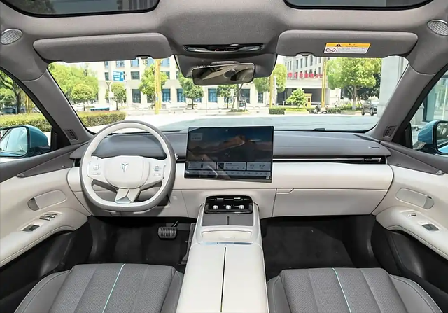 进入车内,深蓝L07大面积采用软性亲肤材质,配合渐变亲肤膜片装饰件,营造出科技豪华的氛围。15.6英寸向日葵屏可向左右偏转15°,主副驾均可方便浏览,上下车或者倒车时也可自动偏转。车内没有仪表盘,而是采用55英寸AR-HUD全息式增强现实系统,可将智驾信息、导航指引、小地图、仪表指示灯等关键数据投射在前方,不用转头看屏,目视前方就能获取信息,驾驶更专注更安全。