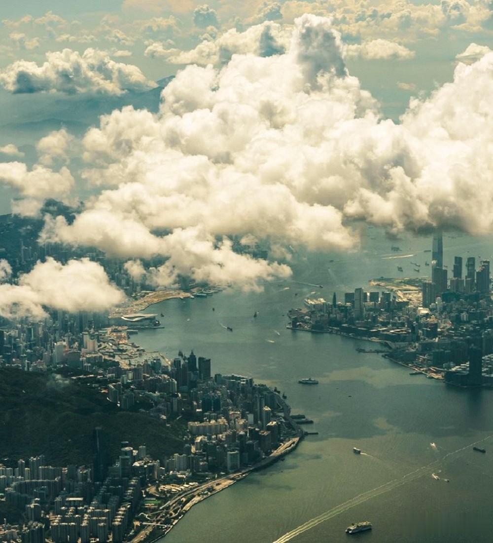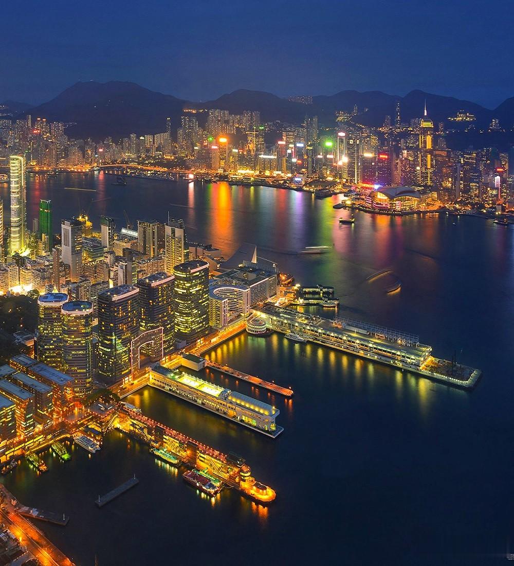 航拍香港维多利亚港,有世界三大夜景之最的美誉