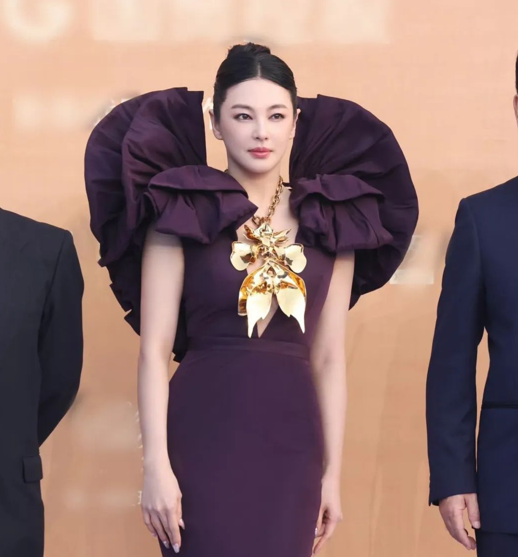 随后出席金鸡奖,穿的Alexander McQueen礼服也是,穿到她身上,包臀包得严丝合缝,人也变得拘束起来,被网友调侃在cos石矶娘娘。
