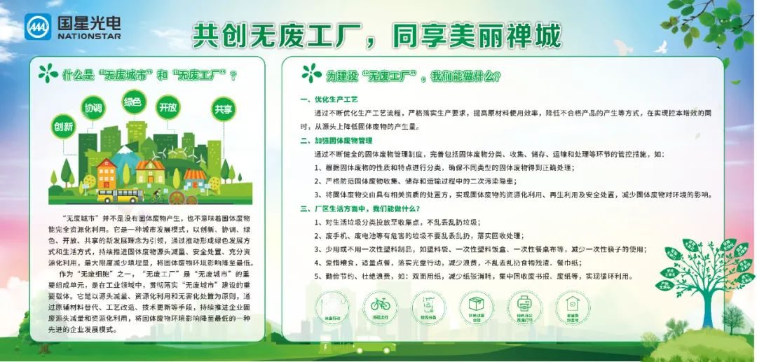 对国星光电而言,建设“无废工厂”不仅是助力禅城区实现“无废城市”目标,更是一份契机,进一步夯实了公司的清洁生产及绿色工厂体系,压实了各级环保责任,有效提升了广大员工的环保意识,切实增强了员工对环境保护的责任感。在后续工作中,国星光电将把“无废工厂”理念进一步贯彻到企业生产工作与员工生活中,形成长效工作机制,推动公司实现绿色低碳高质量发展。