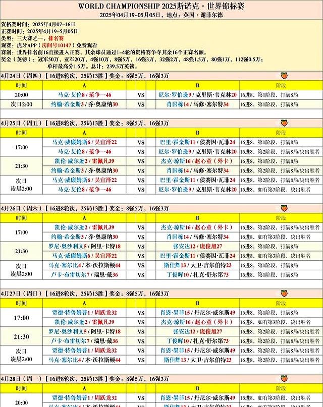 世锦赛的赛程表,官方应该会公布,你们自己去找找。我就不替你们操心了。
