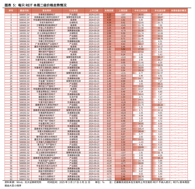 报告标题:二级价格整体上行,仓储物流类REITs涨幅最大——REITs周度观察(20250317-20250321)报告发布日期:2025年3月22日分析师:张 旭 执业证书编号:S0930516010001分析师:秦方好 执业证书编号:S0930524080001联系人:李爱娅(光大非银研究员)