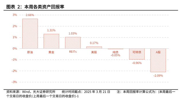 与其他主流大类资产相比,回报率由高至低排序分别为:原油>黄金>REITs>美股>纯债>可转债>A股。