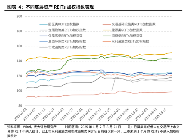 从底层资产类型来看,本周仓储物流类REITs涨幅最大。本周回报率排名前三的底层资产类型分别为仓储物流类、能源类和保障房类,其加权指数分别收于117.85、151.14和123.28,回报率分别达1.77%、1.63%和1.41%。