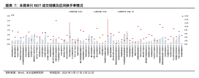 从单只REIT层面来看,本周单只REIT成交规模和换手率方面表现延续分化。周内成交量前三的是中金普洛斯REIT/华夏华润商业REIT/华夏中国交建REIT;周内成交额前三的是中金普洛斯REIT/华夏华润商业REIT/华夏中国交建REIT。