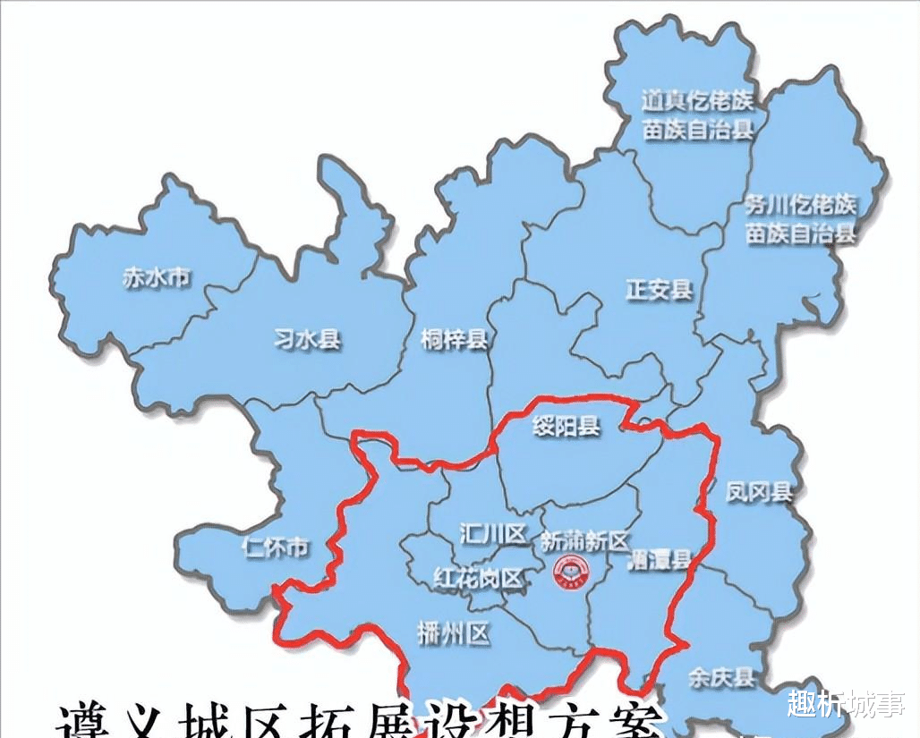 但除了3个市辖区之外,遵义另外还规划建设着一个新蒲新区,也就是遵义未来的新城中心。特别是在新浦新城的规划辐射来看,除了与目前城区连接之外还将带动着湄潭、绥阳等县域的发展。