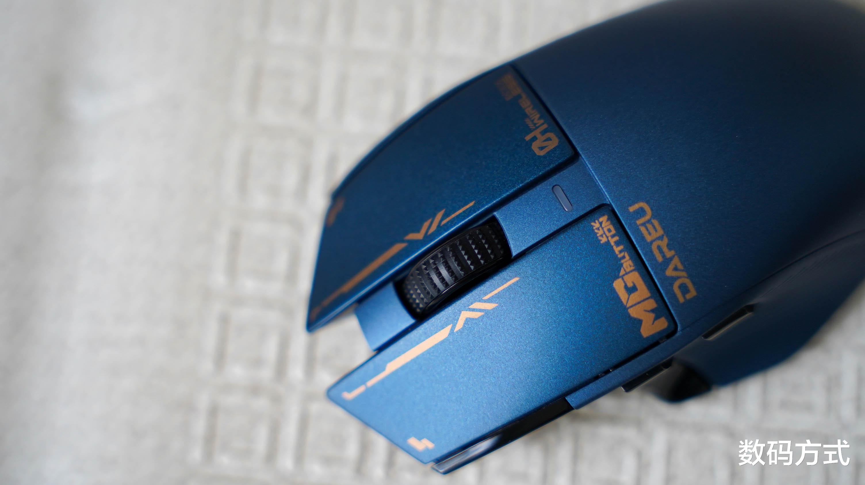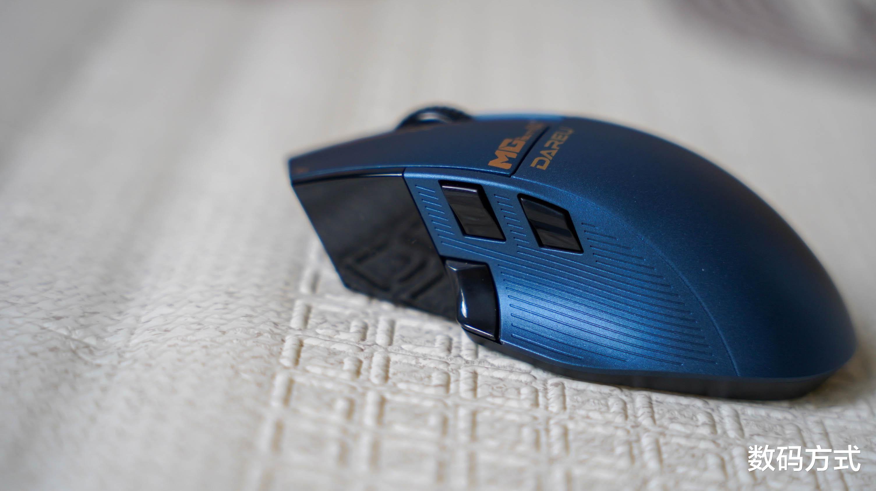 那说到这,就不得不说一下达尔优A980Pro的重量,我们都知道这款鼠标的竞品罗技G502肯定也是其中之一,但是罗技G502的重量就是我对这款鼠标望而却步的主要原因,虽然我对这款鼠标同样很心动,但这个重量在长时间使用以后附加给手掌的疲劳感很多人都受不了。而达尔优A980Pro就很合适,仅65g的重量实测真的很舒服,甚至是女性玩家长时间使用也没有什么压力,好评!我这次拿到的是蓝色版本,另外还有黑色和白色可选,我个人更加推荐白色版本,更加简单和有品质感。