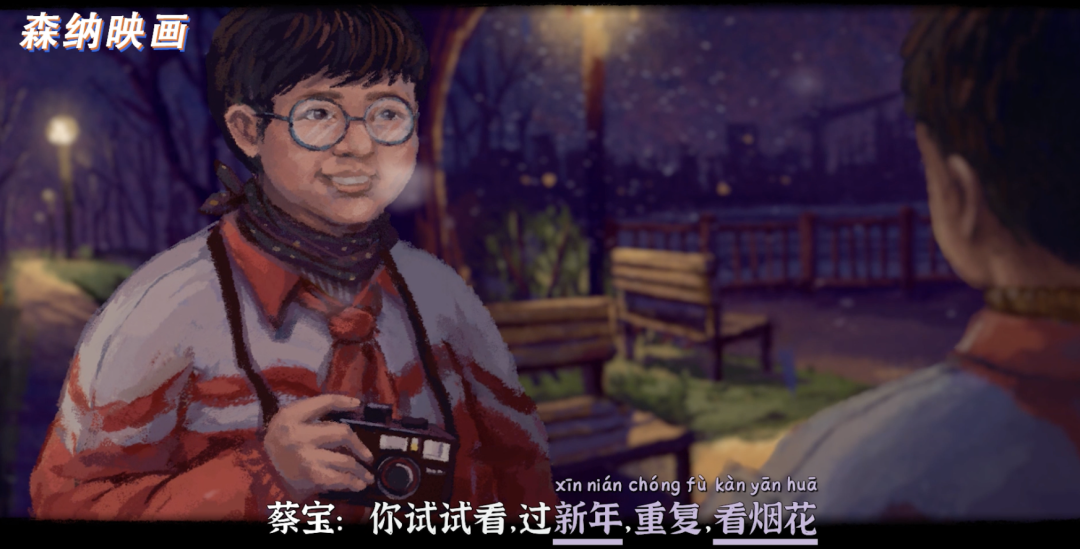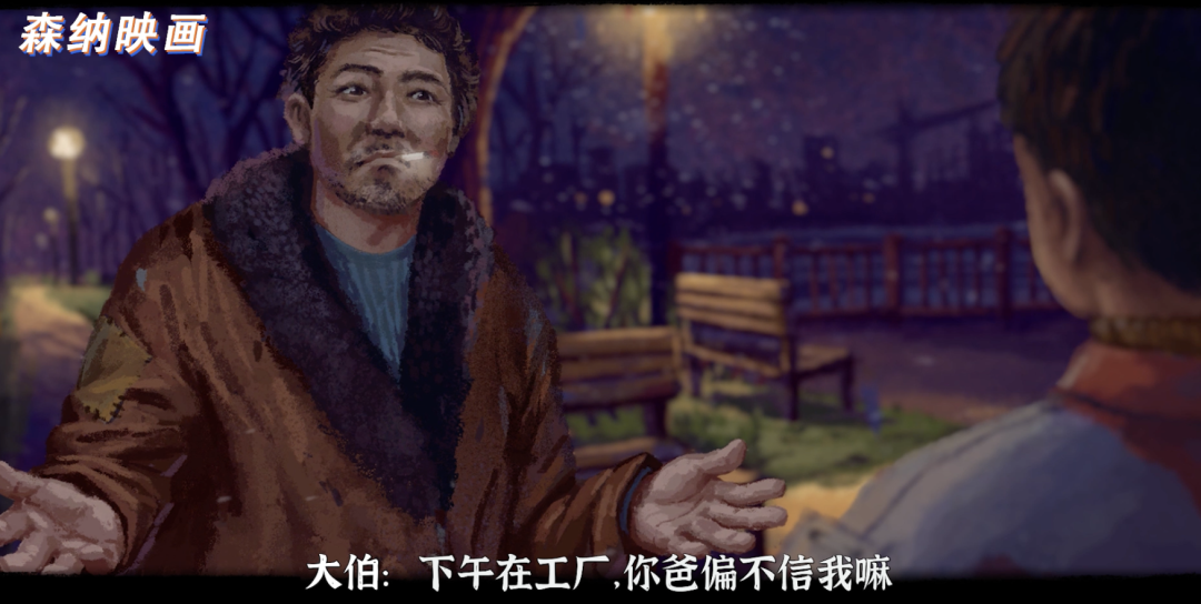 而这个叔叔就是刚才那个卖彩票的骗子,“出国”自然也是一场骗局,只不过为了帮大伯完成心愿,我们还是帮他凑齐了钱和档案。20世纪的最后一个夜晚,大伯满心期待地在公园等待与骗子的会面,沉浸在对未来国外生活虚假的憧憬中。