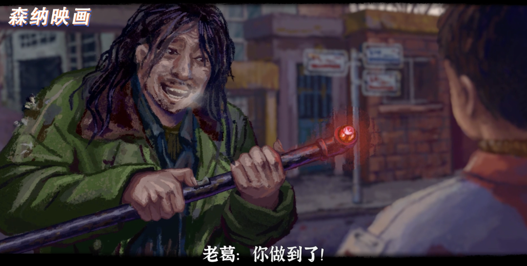 而杨奶奶其实也有着一枚象征大不溜星人身份的胸章,只不过她的是反着过来的“M”,在我们看来,杨奶奶这一角色是与老葛完全相反的形象,老葛代表对不完美的不甘,对困难的逃避。杨奶奶则是对虚无主义的反对,是对生活热切的向往。