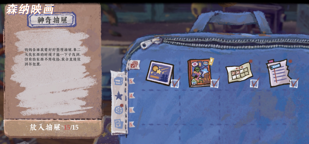 如果这天并不完美,那么可以再次开始“轮回”。直到不断改变时间线,完成自己想要的结果。每周目这天结束的夜里,会有一个特别的抽屉,如大家曾经在自己的小抽屉小柜子中,里面藏上自己珍爱和喜欢的东西。可以把这一周目获得的物品道具,选择15个存放到其中。这样再一次开启轮回后,能直接取得这些道具,节省这天时间的花费来推动更多的剧情。通过之前积累到的信息,这样就能在下次某些特定的时间地点触发剧情,以此来推进故事线,进而达成完美的一天。