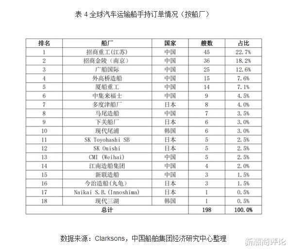 中国有10家船厂入围(包揽全球前六),手持订单合计达到163艘,占比82.32%。细分来看,招商局重工(江苏)、南京金陵、CMI船厂隶属于招商局工业集团,广船国际、外高桥造船、江南造船隶属于中国船舶集团,厦船重工、马尾造船隶属于福建省船舶工业集团,中集来福士是全球最大集装箱制造商中集集团旗下子公司,新联造船是中国汽车出口冠军奇瑞汽车的子公司。
