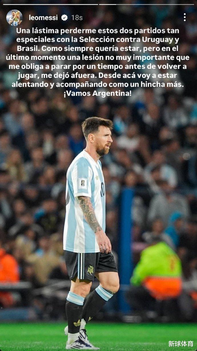 在刚刚结束的美职联比赛中,梅西打满全场并取得进球,帮助国际迈阿密客场2-1逆转亚特兰大联;但赛事结束后,梅西出现不适状况。关于缺席赛事梅西也在IG上向球迷们说明了情况。